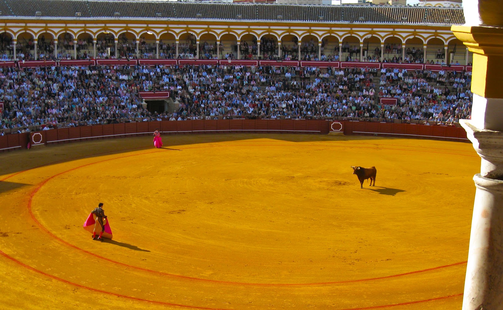 The Maestranza in Seville was built in the 18th Century and is one of the country’s most renowned bull rings. I saw a corrida there. The next day, the reviewer said all three of the bullfighters (toreros) were crap, which confirmed my own uninformed opinion. Bullfighting rituals go back at least 5,000 years in the Mediterranean. A Minoan fresco from Crete 3,500 years ago shows a toreador leaping over the horns and onto the back of a bull. Both men and women practiced this ritual.
